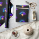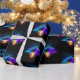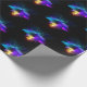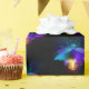 Voz mecânica, antiga, com lâmpada e asas finas brilha cor de laranja, roxo, turquesa sobre fundo preto. Estilo Steampunk.