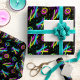 Este padrão uniforme de pulseiras e pulseiras espalhadas em uma série de cores néon brilhantes adiciona um elemento divertido a qualquer ocasião. Este pacote de presentes também coordena com nossos convites e suprimentos de festas do Sweet 16 listados no ID760. Procure ID923 para ver outros produtos com este design colorido.