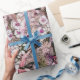PAPEL DE PRESENTE NESTE DE PÁSSAROS, ÁRVORE COM FLORES DE PRIMAVERA