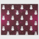 Homem de neve com chapéu em fundo vermelho.