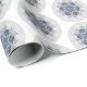 O design neste papel de embrulho parece um floco de neve. O floco de neve azul e cinza é puxado pelo papel. Diversão de design boho-chic para o inverno. Pode ser personalizado com seu próprio design de floco de neve, se desejado.