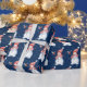 Papel De Presente Neve Natal com Pássaro em Azul