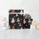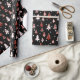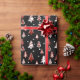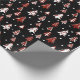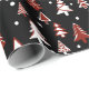 Este papel de embrulho apresenta um padrão de árvores brancas e vermelhas e pontos brancos sobre fundo preto. Perfeito para os feriados ou para o inverno em geral.