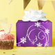Um papel de embrulho de Natal roxo e branco, com grandes espirais de flocos de neve brancos e estrelas espalhadas sobre fundo roxo metálico e colorido para adicionar um toque de estilo ao seu presente de Natal que embrulha esta temporada de férias.
