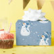 Bonito boneco de neve em flocos de neve em um fundo azul. A cor de fundo pode ser alterada.