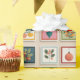 A playful grid of nine festive illustrations, each with vibrant Christmas ornaments or stylized tree shapes in triangular arrangements. Framed in bold holiday hues, this cheerful design brings a pop-art twist to seasonal decor and gifting.