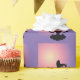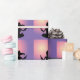 A moda e a silhueta refrescante de uma mulher a meditar num fundo roxo a amarelo.