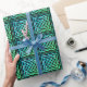 Papel De Presente Nó Celta - Design Azul Quadrado Verde