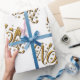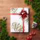 Um elegante, branco e de ouro, embrulho de Natal, com a tradicional saudação de Natal de Noel, em ouro. Há também pequenas imagens de Natal embutidas nas letras, incluindo o chapéu de Papai Noel, a cana-de-açúcar, caixas de presentes e estrelas de ouro e flocos de neve para um sentimento verdadeiramente festivo.