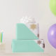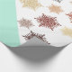Padrão de Noite de Natal com flocos de neve caindo em cores menta e amarelo dourado.