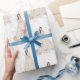 Papel lindo para dar presentes de casamento. Um padrão de noiva branco e dourado com detalhes em dourado