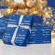 Embalagem de presente de aniversário personalizada em azul e branco. Tem uma design de tipografia com a mensagem: "Para Alexander Happy Birthday! Amor da mãe e do Pai xxx" na tipografia de script branco-na moda. Para personalizar, você pode adicionar seus detalhes, de quem é o presente e de quem ele é, no botão personalizar este texto. Você também pode alterar o texto "Parabéns!" para sua própria mensagem aqui se quiser.Para mudar a cor ou a fonte, faça o check-out da ferramenta de edição de design. Perfeito por adicionar um toque pessoal ao seu presente de aniversário. Para obter ajuda com a personalização, produtos correspondentes ou para um design personalizado, entre em contato comigo via chat zazzle ou email: ursuladawnmoon@gmail.com