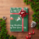 Papel de embrulho de Natal moderno, elegante e fofo, com a imagem de um monocromo puxando Papais noeis para trenó (cheio de presentes), o texto "Feliz Natal e Feliz ano novo 20XX" em escrita na moda / caligrafia e um nome personalizado. Com borrachas de flocos de neve brancos e prateados, e um par de sinos de Natal com um toque de holly, sobre um fundo verde de Natal. Certifique-se de personalizar o nome e o ano.