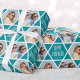 Papel de embrulho personalizado é uma forma excelente de adicionar um toque pessoal ao seu dom! Este design de na moda apresenta um padrão estelar perfeito, mostrando duas de suas fotos favoritas junto com o nome do receptor. A mensagem 'Happy Hanukkah' também pode ser personalizada ou personalizada para se adequar a diferentes ocasiões. Este design versátil é ideal para a família e amigos comemorarem aniversários, feriados, Chanucá, Bar ou Bat Mitzvahs, graduações, mudarem-se para uma nova casa, e muito mais! Ele vem com um acabamento mate ou brilhante. Cores: turquesa azul-esverdeada e branca.