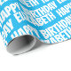 Papel de empacotamento de aniversário feliz de nome personalizado em azul claro que pode ser personalizado por você. Faça com que esse presente se sobressaia com papel de embrulho personalizado criado com seu nome e sua própria mensagem, se quiser.