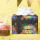 Esta animadora e divertida design de papel de embrulho com tema de aniversário tem a mensagem "FELIZ ANIVERSÁRIO, QUINN" ter um espectro colorido de arco-íris inspirou um padrão de gradação, e um vibrante fogo de artifício celebratório explosivo inspirou um padrão de fundo. Um papel empolgante como este pode ser usado ao embrulhar presentes/presentes de aniversário que estão sendo dados a alguém chamado Quinn. [~Z0000456]