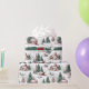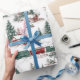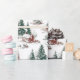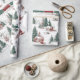 A vintage holiday train chugs through a snowy landscape of pine trees and cozy cabins in this nostalgic red and green toile pattern. Evoking childhood memories of toy train sets and Christmas magic, this timeless wrapping paper brings a sense of wonder to your gift-giving tradition.