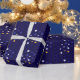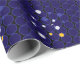 Elevem seu dom com esse papel embrulho encantador, mostrando um design azul mesmerizante com círculos amarelos e brancos brilhantes.