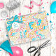 Esses grandes marcos de aniversário merecem ser comemorados com algo um pouco especial, como estes designs especiais de papel embrulho. Este, por 50 anos, apresenta o número 50 em uma seleção de fontes legal junto com o texto "Parabéns". Disponível em vários esquemas de cores diferentes, este exemplo é uma mistura de cores brilhantes e alegres, da turquesa ao amarelo ouro, na sua escolha de qualquer cor de fundo (mostrada aqui em branco apenas como exemplo). Procure ID270 para ver outras idades e cores adicionais para este design.
