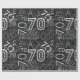 Esses grandes marcos de aniversário merecem ser comemorados com algo um pouco especial, como estes designs especiais de papel embrulho. Este, por 70 anos, apresenta o número 70 em uma seleção de fontes legal junto com o texto "Parabéns". Disponível em muitos esquemas de cores diferentes, este exemplo é tons de prata na sua escolha de qualquer cor de fundo (mostrada aqui em preto apenas como exemplo). Procure ID270 para ver outras idades e cores adicionais para este design.