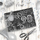 Esses grandes marcos de aniversário merecem ser comemorados com algo um pouco especial, como estes designs especiais de papel embrulho. Este, para os 90 anos, apresenta o número 90 em uma seleção de fontes legal junto com o texto "Parabéns". Disponível em muitos esquemas de cores diferentes, este exemplo é tons de prata na sua escolha de qualquer cor de fundo (mostrada aqui em preto apenas como exemplo). Procure ID270 para ver outras idades e cores adicionais para este design.