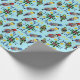 A cute and colorful pattern of nutcrackers, mistletoes, and bells with a baby blue background.