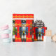 As linhas de nutcrackers coloridos marcham através das fileiras da flor de lis do ouro neste papel do presente de época natalícia. Mostrado aqui com um fundo vermelho, você pode escolher toda a cor que você gostar da utilização "a personaliza" botão.