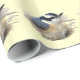 Este papel de embrulho é decorado com um padrão repetitivo do Nuthatch Vermelho que parece que está assumindo o comando! Ele é um pássaro muito pequeno com uma mama cor de ferrugem, uma cinza azul e uma faixa de olhos pretos em seu rosto branco. Sua cabeça e bico são muito grandes em proporção ao seu corpo.