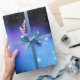 Galáxia embrulhando papel com uma abertura cósmica de nuvens espaciais nebulosas azuis e roxas e estrelas cintilantes. ♡ Idyllfire