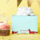 O que a Raposa diz, raposa vermelha no papel azul com palavras vindas da boca.