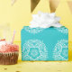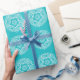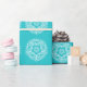 Esta mandala branca senta-se num fundo de turquesa. As cores são muito calmantes e pacíficas. Parte da coleção Jarn Mandala.