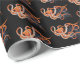 Um polvo laranja contra um pano de fundo de preto. Tentáculos de polvo dentro e em volta de bolhas e uma mandala azul