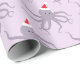 Papel de embrulho com um padrão de Natal inovador de ilustrações sorridentes, roxas, de polvos vestindo chapéus de Santa num fundo roxo leve.