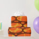 Este design de papel de embalagem tem duas camadas de ovais em um campo de amarelo, marrom e laranja.