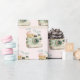 Este papel de embrulho de aniversário apresenta uma câmera de cupcake de aniversário e a frase "Oh snap."