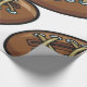 Uma velha bola de rúguebi marrom amarrada com cadarços. Este design parece realmente eficaz nestes papéis de enrolamento