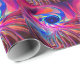 Uma imagem fractal rotacional brilhante, multicolorida (vermelha, púrpura, azul).