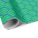 Este papel de embrulho tem um design de deco de arte de linhas azuis curvas em forma de triângulo em um campo de verde repetido através do design. Quer uma cor diferente? Me mande mensagem.