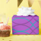 Este papel de embrulho tem um design de Boho de ondas roxas e turquesas em um campo de roxo claro.