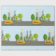 Um ônibus escolar com a cidade ao fundo. Este design parece realmente eficaz neste papel de moldagem