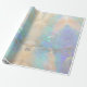 Neste papel de embrulho de presente está um padrão abstrato da natureza a partir de um impressão fotográfico de um pedaço de opal australiano bem polido em lindo azul-aquamarino, rosa, pêssego e verde.