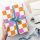 Papel De Presente Orange White Pink Checkered Pattern Design