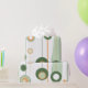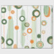Esse trabalho de arte apresenta um padrão elegante e minimalista de formas circulares e alongadas, organizadas em um alinhamento vertical que lembra designs retrorfuturistas. A composição usa uma paleta de cor fresca de verde, laranja e creme suave, criando um aspecto harmonioso e equilibrado. Os círculos, alguns sólidos e alguns esboçados, parecem flutuar ao longo de linhas verticais finas, evocando a imagem de planetas e órbitas. A combinação de linhas limpas e formas moles dá à peça uma sensação moderna, mas nostálgica, combinando a estética moderna do século médio com um toque de estilo contemporâneo.