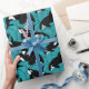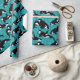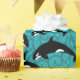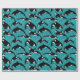Adicione um toque aquático a presentes com este papel de embrulho ilustrado que apresenta ilustrações de orcas ou baleias assassinas em conjunto preto e branco contra um fundo de ondas de oceano azul lacrimogêneo.