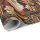 A base do papel de embrulho é um creme profundo e rico, evocando uma sensação de calor e festividade. Intrajadamente gravados nesta canvas de fogo são uma variedade de quadros de ouro ornamentado. Estes quadros não são apenas quadros; são obras de arte em si. Cada quadro é meticulosamente projetado com padrões intrincados, coalhada e floreio que exaltam um ar de opulência. No centro de cada moldura de ouro, surge a verdadeira estrela desse papel embrulhado. A Papercraft Santas, trazida à vida com surpreendente efeito 3D, é o ponto focal desses quadros. Essas Santas não são como as típicas ilustrações do Papai Noel; são esculturas de papelaria lindamente artesanais, meticulosamente cortadas e dobradas para criar um efeito tridimensional impressionante.