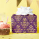 Add timeless elegance to your celebration with this rich purple and gold damask design. Featuring ornate floral motifs arranged in symmetrical vertical columns, this pattern evokes classical luxury with a modern twist. The metallic gold detailing and deep jewel-toned background create a high-impact visual, perfect for ceremonial decor, glam party themes, or upscale gift presentation.