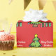Whimsical Merry Christmas tree com ornamentos coloridos em um fundo vermelho com vermelho e vermelho apresenta fácil de personalizar com um nome de família ou amigo.