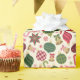 Natais vintages ornamentos espalhados sobre um fundo colorido cremoso.