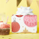 Este belo presente de Natal tem uma vibração retrô com um simples fundo branco. Este padrão colorido apresenta Enfeites de natal, estrelas douradas, bolinhas e sinos em cores de ouro, rosa e vermelho.