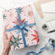 Papel De Presente Ornamentos nas Estrelas de Natal Vermelho Azul Mod